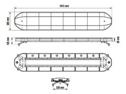 Varsellysbjelken er 1615 mm bred, 300 mm dyp og har en høyde på 59 mm uten festebrakett (105 mm med festebrakett)