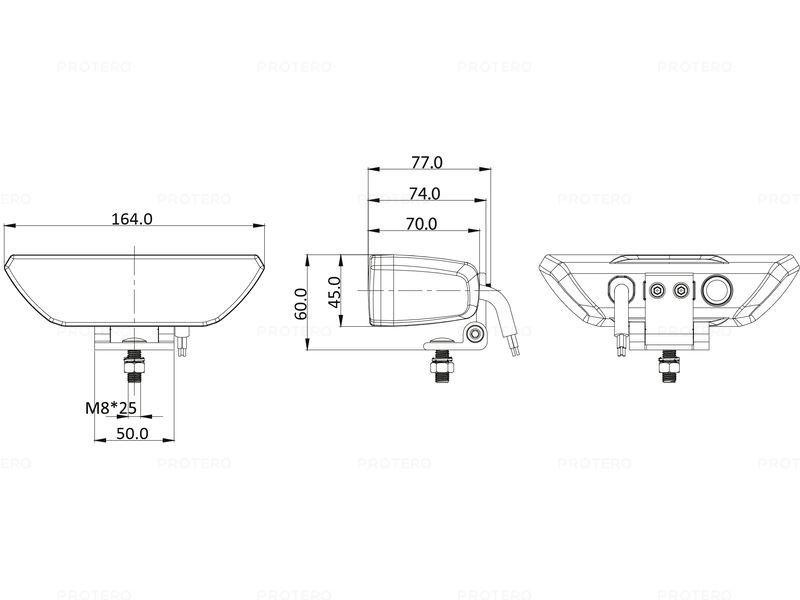 Mål: Lykten er 164 mm bred, 70 mm dyp og har en høyde uten festebrakett på 60 mm.